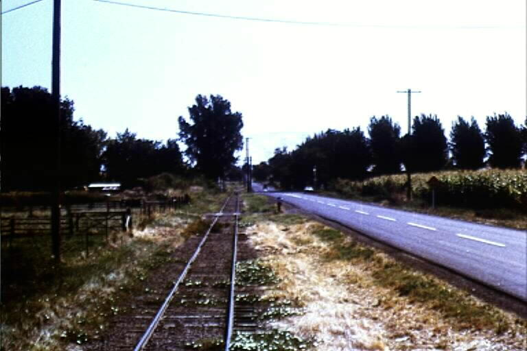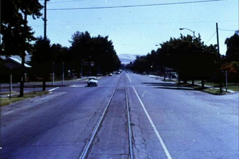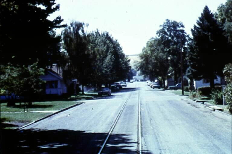 31. Looking south down Hwy. 11 in Milton-Freewater when the tracks ran down the